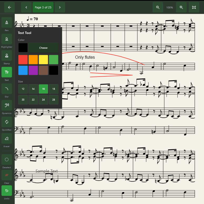 All the tools you need right at your fingertips. No unnecessary bloat but just the tools that will help you while making annotations. Go into see through mode to edit the entire sheet music without any problem. Import annotations from a colleague or export your own to share! Set bookmarks for quick navigation and much more.