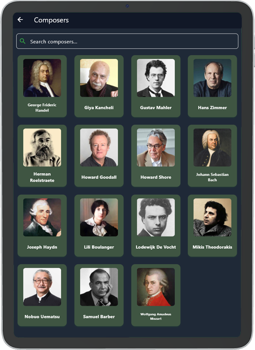 The default viewing mode is “All Music”, which displays your entire sheet music collection in one long list. Each item in this list is accompanied by an icon that is pulled directly from your metadata. You can decide in the app’s settings which metadata field should be prioritized, choosing whether the icons shown are based on composers, artists, albums or performers.